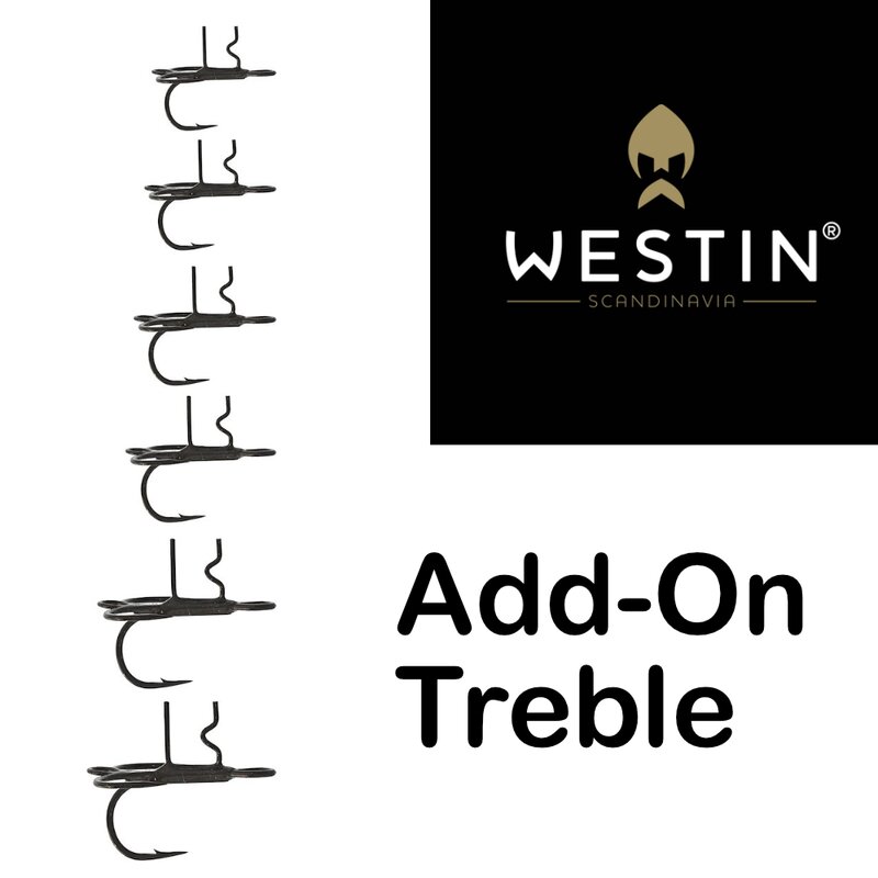 Der Add-On Treble ist eine weitere innovative Ergänzung des Westin-Sortiments. Das einzigartige Clip-System am Hakenschenkel ermöglicht das einfache Anbringen beliebiger Gummiköder. Die flache Öse sorgt dafür, dass der zusätzliche Haken perfekt am Köder anliegt. Ein zusätzlicher geschweißter Ring am Drilling erleichtert das Anbringen eines Wirbels oder eines Vorfachs. Perfekt, um deine eigenen „unsichtbaren“ Stinger herzustellen, wenn du es mit wählerischen Fischen zu tun hast.